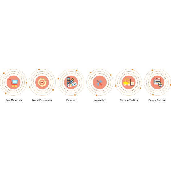 After the vehicle assembly is completed, we will inspect and test various systems such as the rated load, driving and lifting speed, body noise and vibration, appearance and painting, to ensure that the vehicle meets the international quality standard and issue a product qualification certificate.